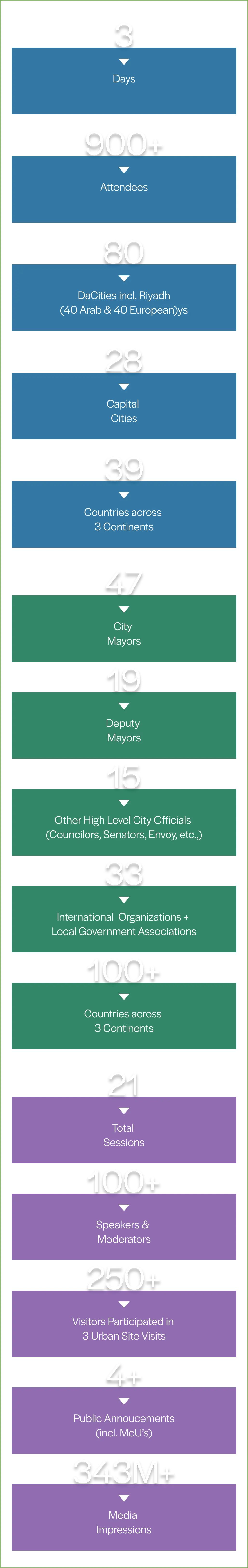 In conclusion, we extend a warm welcome to all Arab and European cities, their leaders, representatives of international urban organizations, and development funds to Riyadh – the capital of urban transformation.